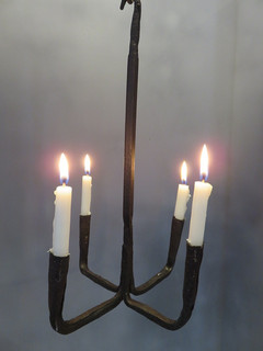 ANTIQUE WROUGHT IRON FOUR CANDLE HANGING CHANDELIER AAFA View item