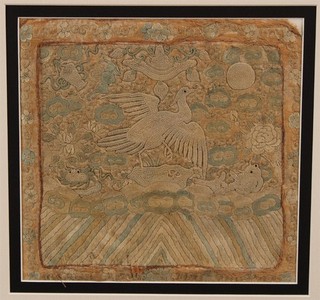Antique Mandarin Chinese Qing Dynasty Flying Crane Rank Badge Silk Embroidery View item