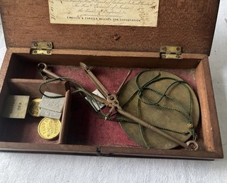 Antique Broad Arrow HM Customs Apothecary Coin Scales Balance Boxed & Weights View item