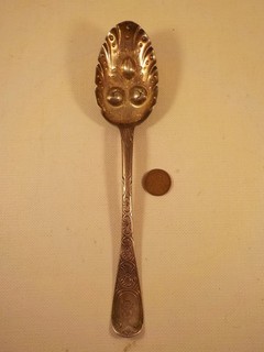 Original 1860's vintage (Cannot ID) "Silver REPOUSSE BERRY Serving SPOON"! View item