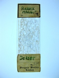 Antique microscope slide by Gregory Bottley. Geology. "Purbeck Marble. Dorset". View item