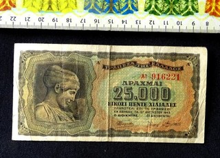 ( AUST 1.75 ) Greece Banknote 25 000 Drachme Year : 1943 . View item