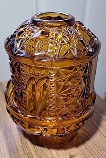 Vintage Indiana Glass Large Golden Amber Stars And Bars Fairy Lamp 6.5” X 4.5” View item