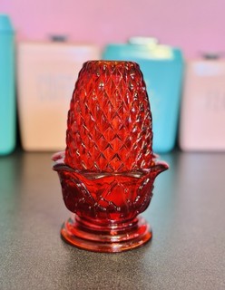Vintage Brooke Crescent Ruby Red Pineapple Fairy Lamp Candle Holder View item