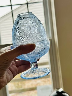 Vintage Fairy Lamp Indiana Glass Tiara Light Blue Candle Holder View item
