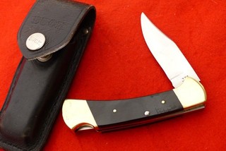 Vintage Buck USA no nail nick 112 Ranger Micarta Upside Down Stamp knife View item