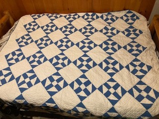 Early Vintage Hand Made Blue and White Quilt 70"x68" Iron Cross Pattern Farm View item