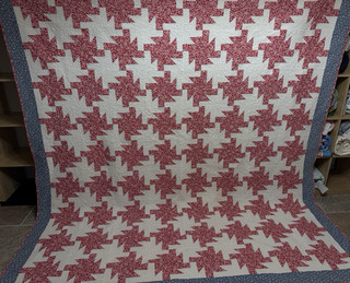 OMG! Vintage Style Handmade Red & White Twisted Star Patchwork Quilt 106x96 #263 View item