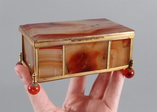 Antique Victorian Banded Agate Gold Gilded Brass Vanity Trinket Dresser Box NR View item