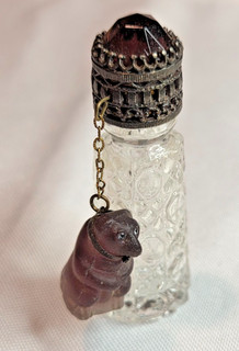 Vintage Irice Czech miniature perfume bottle w/ burgundy jewel top & bear charm View item