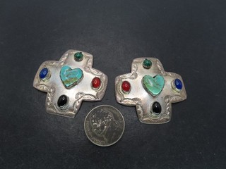 VTG OLD PAWN NATIVE NAVAJO STERLING SILVER w/ MULTI STONE UNIQUE DESIGN EARRINGS View item