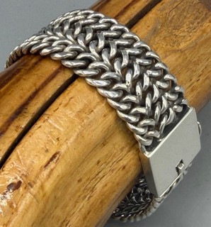 Vintage Sterling SILVER Men’s Thick Cuben Link Bracelet broken Clasp 45.6 grams View item
