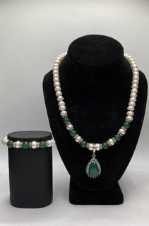 ZHUJI San Pearl Silver Tone F.W.P & Gemstone Necklace & Bracelet Set 98.2g View item