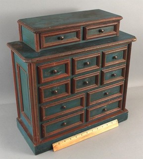 Antique Handmade Folk Art Chest of 13 Draws Original Blue & Red Paint NR View item
