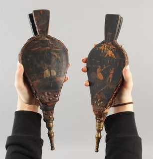 2 Small Antique 19thC Folk Art Chinoiserie Painted Gold Gilt Fireplace Bellows View item
