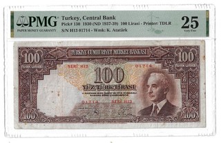 25 PMG 100 Lirasi ND(1937 1939) Turkey Banknote # 130 View item