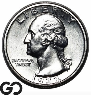1932 S Washington Quarter Lustrous White Gem BU Key Date Tough This Nice! View item