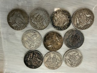 Lot of One Shillings Australia Silver 58g lot 1539 View item