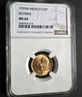 1955 M Mexico Gold 5 Pesos NGC Guaranty MS64. Restrike Nice Bright Top Bid View item
