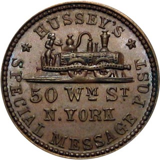 1863 New York City Civil War Token Hussey's Steam Train Locomotive Time Is Money View item