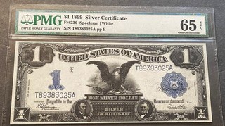 $1 1899 "BLACK EAGLE" SILVER CERTIFICATE FR#236 PMG SUPERB GEM CU 65EPQ View item