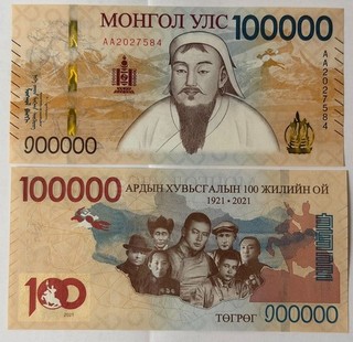Mongolia _ 100000 Togrog 2021 (2025) UNC 100th Ann of Peoples Revolution P. W81 View item