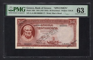 1942 Greece/German&Italian Occupation WWII 1000 Drachmai Pick#118 PMG 64 EPQ UNC View item