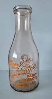 Vintage Modesto Calif Golden Rule Dairy 1930s Quart Duraglas Glass Milk Bottle View item