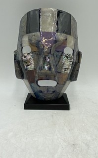 ANTIQUE MEXICAN TIGRE OR JAGUAR GUERRERO LARGE LEATHER DANCE MASK W/ MIRROR EYES preview