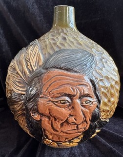 Rick Wisecarver 10” Pottery Vase Signed Hand Carved American Indian WIHOA’S 1979 preview