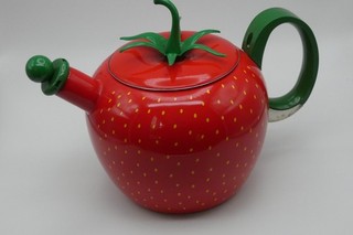 Vintage Red Strawberry Shaped Tea Kettle Teapot View item
