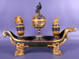 Antique French Empire Bronze Inkstand Galleon Ship Eagle & Cherub Desk Inkwell View item