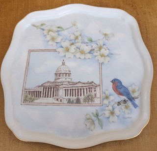 Vintage Hand Painted China Plate Missouri State Capitol Bird Flower P. Oliver View item