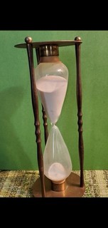 ANTIQUE ENGLISH HOURGLASS BRASS & GLASS OVER 10 INCHES TALL WHITE SAND NR View item