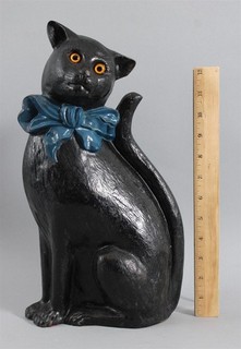 Antique Cast Iron BLACK CAT Doorstop Sculpture Glass Eyes Original 1st Paint View item