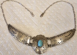 VINTAGE NAVAJO SIGNED D. SKEETS TURQUOISE STERLING SILVER NECKLACE vafo View item