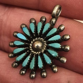 VINTAGE ZUNI PETIT POINT TURQUOISE CLUSTER STERLING SILVER PENDANT CHARM vafo View item