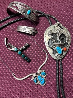 4 NAVAJO STERLING TURQUOISE NECKLACE BOLO TIE 2 CUFF BRACELETS.Free shipping View item