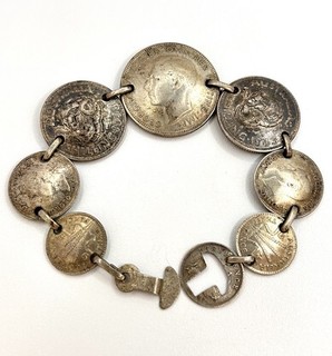 Vintage Australia Silver 3 Pence 6 Pence & Shilling Coins Link Bracelet 8” 34g View item