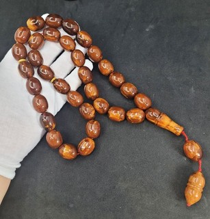 109.27 HUGE ANTIQE BALTIC AMBER ROSARY 17 20 olive misbah tesbih 33 prayer beads View item