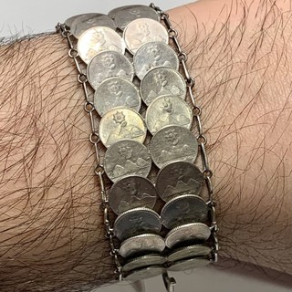 Vintage 10K White Gold Natural Single Cut Diamond Sapphire V Lnk Ladies Bracelet View item
