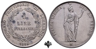 PROVISIONAL GOVERNMENT OF LOMBARDY 5 lire 1848 SILVER View item