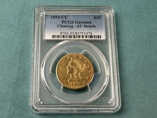 1884 CC Ten Dollar Gold Eagle Carson City $10 Liberty Head Coin PCGS AU Details View item