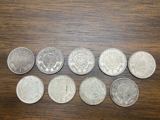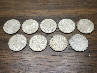 Lot of 9 Saudi Arabia Silver 1 Riyal Coins Year 1354 AH (1935 AD) Authentic View item