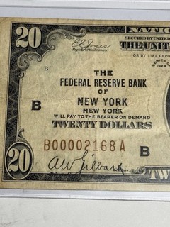 Fine 1929 $20 LOW SERIAL Federal Reserve Bank of New York National Currency Note View item