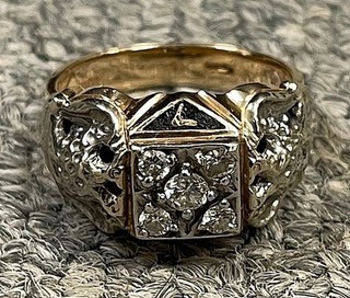 10kt Yellow Gold Masonic/Shriner Mans Ring With Diamond Center. Ring Size 9 View item