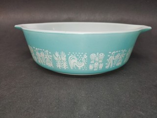 VINTAGE TURQUOISE PYREX AMISH BUTTER PRINT CASSEROLE 1 PINT DISH NO LID 171 PINT View item