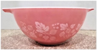 Vintage PYREX Cinderella Gooseberry White on Pink 1 1/2 Quart #442 View item