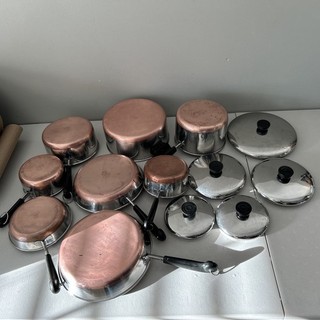Vintage Revere Ware Copper Bottom 13 Pc Cookware Lot Pots Pans Lids USA View item