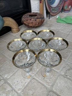 Classic Moser Lady Hamilton Set of 7 Gold Rim 5 1/8"Champagne Coupe Glasses View item